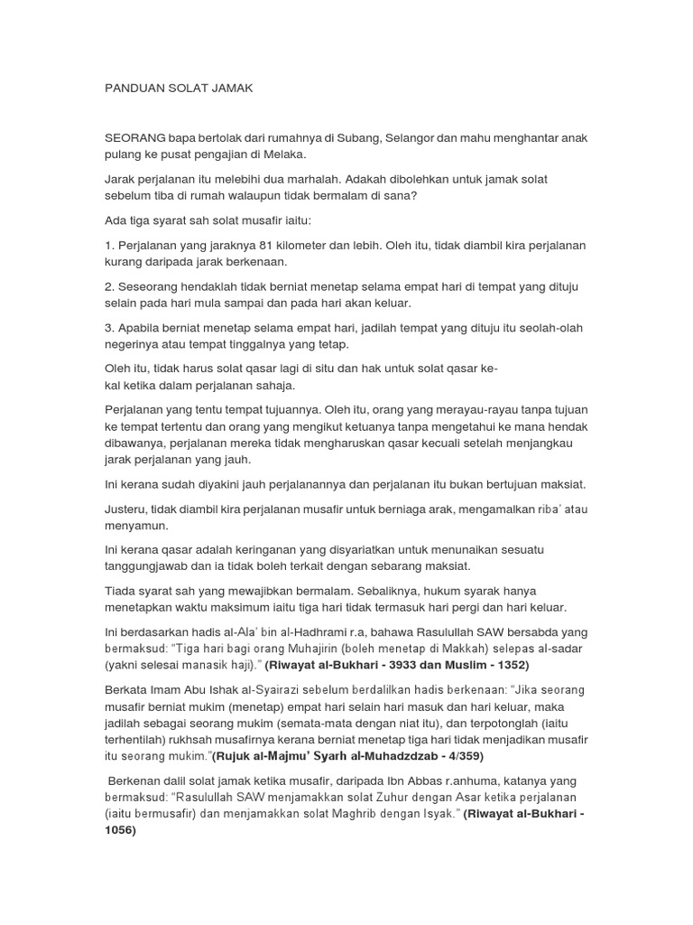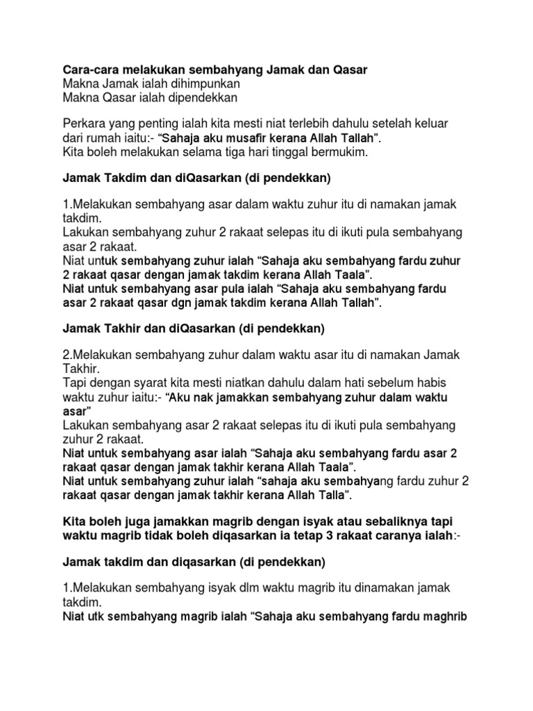 Namun, nu memperbolehkan pelaksanaan salat jamak di rumah bagi seseorang yang tata cara shalat jamak pada dasarnya hampir sama dengan mengerjakan shalat wajib seperti membaca niat shalat jamak. Jika singgah lagi di r&r, baca lagi. Juga dibolehkan bagi umat islam ketika dalam perjalanan untuk menjamak dua shalat untuk dilakukan pada satu waktu, baik jamak takdim atau jamak. Sekiranya mertua saya telah berpindah rumah kekampung lain adakah boleh solat jamak dan qasar? Jamak takdim soalt zohor dijamakkan dengna asar dalam waktu zohor dan solat magrib.